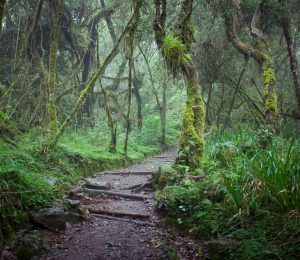After breakfast, descend through the rainforest to Mweka Gate.