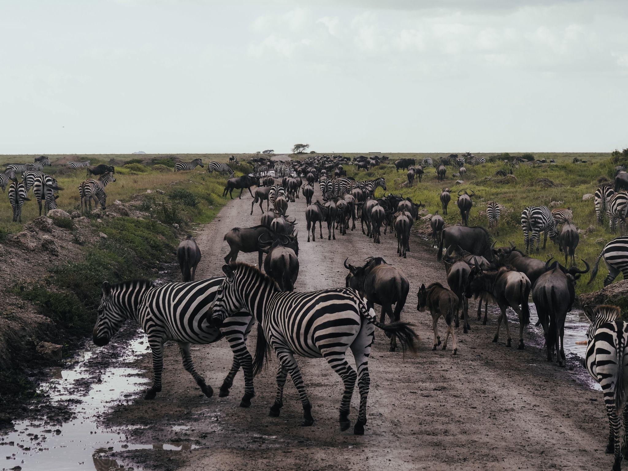 • Zebras and wildebeests